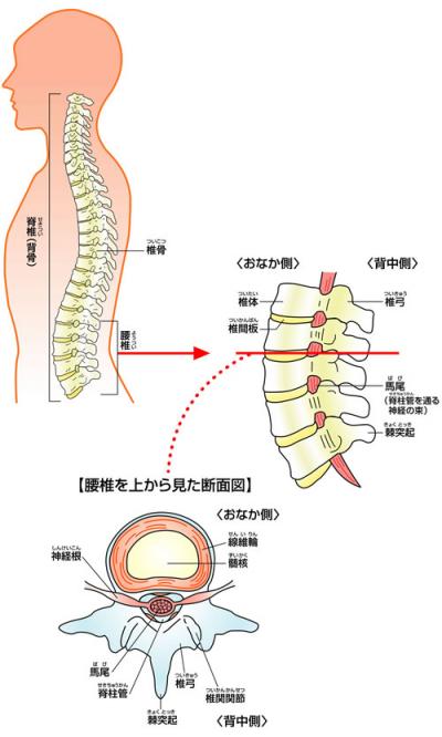 5つある腰椎のうち、4番目と5番目、5番目とさらに下にある仙骨の間に生じることが多いです。