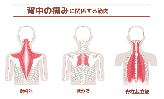 背部の過緊張が起きている場合、血行不良によるコリ感や張り感を生じやすくなっています。