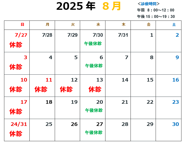 | 午後 | ● | ● | × | ● | ● | ● | × |