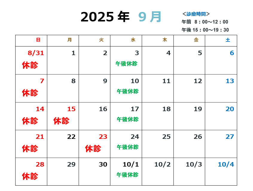 【2025年9月の診療日について】