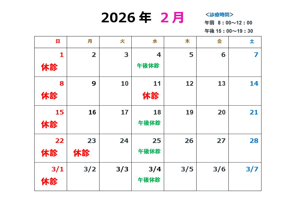 | 午後 | ● | ● | × | ● | ● | ● | × |