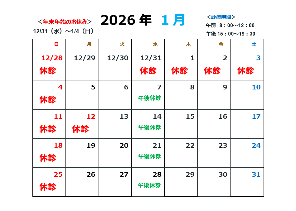 | 午後 | ● | ● | × | ● | ● | ● | × |